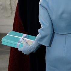 El acertado atuendo de la Primera Dama entrante contrastó con el de la saliente, que recibió en la escalinata de la Casa Blanca a los Trump con un nada favorecedor vestido, de manga corta y cinturón estrecho, de color burdeos. Luego, para la ceremonia, se enfundó en un abrigo del mismo color. Y cuál fue su sorpresa, la de Michelle, cuando Melania la obsequió allí mismo con una caja de Tiffany, de cuyo contenido en algún momento se dará cuenta.