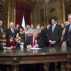"Yo, Donald John Trump, juro solemnemente que ejerceré con fidelidad el cargo de presidente de Estados Unidos y, hasta el límite de mi capacidad, preservaré, protegeré y defenderé la Constitución de Estados Unidos. Que Dios me ayude". Con estas palabras, y con puntualidad británica, ha jurado Donald Trump su cargo sobre dos ejemplares de la Biblia.