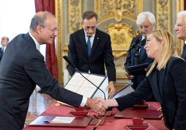 La primera ministra italiana, Giorgia Meloni, junto a sus socios Antonio Tajani y Matteo Salvini, en el Parlamento. Reuters