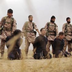 Imágenes de un vídeo del Daesh donde se muestra la decapitación simultánea de al menos 15 hombres en Dabiq (Siria).
