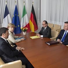El primer ministro italiano, Matteo Renzi, la canciller alemana, Angela Merkel, el presidente francés, FranÇois Hollande, y el primer ministro británico, David Cameron.