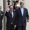 Hollande (2º dcha) recibe a Kerry (dcha) en el Palacio del Elíseo.