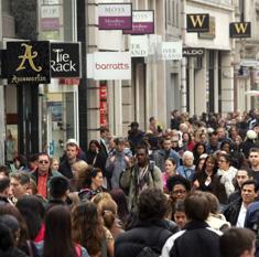Cientos de personas en Oxford Street, en el centro de Londres.