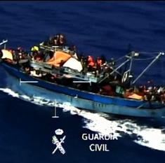 Embarcación con los inmigrantes llegando a las costas italianas.