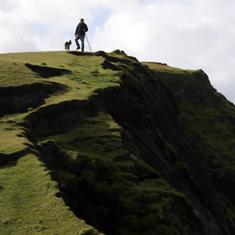 Un pastor irlandés camina con su perro.