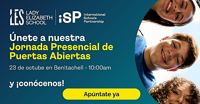 Apúntate ya a su jornada de puertas abiertas el próximo 23 de octubre a las 10 de la mañana en el campus de Lady Elizabeth School en Benitachell. Una ocasión especial para que las familias interesadas descubran su programa académico bilingüe, que dispone de una amplia oferta de asignaturas en secundaria. Durante la jornada, se podrá conocer al profesorado y al equipo directivo, recorrer sus modernas instalaciones y experimentar de cerca el día a día del centro.