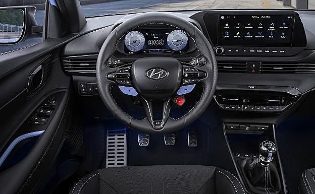 En el interior, el nuevo i20 N ofrece un espacio de conducción de alto rendimiento con una serie de funciones premium de alta tecnología específicas de la línea N. Esto incluye asientos deportivos con reposacabezas integrados, así como volante, pomo de la palanca de cambios y pedales deportivos metálicos N.