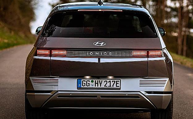 Entre los sofisticados detalles de diseño, llaman especialmente la atención los faros delanteros dobles de diseño cuadrado y con tecnología Matrix LED. Unidos por una moldura negra y escoltados por una bigotera iluminada en la parte baja, resultan muy atractivos y hacen muy reconocible el frontal del Ioniq 5. En la zaga, la atención recae también sobre la firma lumínica que, integrada en una franja negra con la inscripción del modelo en el centro, recurre también a ese diseño a cuadros que la marca denomina 'pixel'.