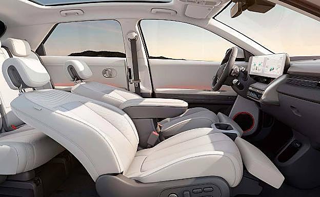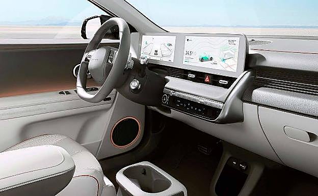 El interior del nuevo Hyundai Ioniq 5 destaca por el espacio disponible para los pasajeros y por un diseño minimalista en el cobran especial protagonismo las dos pantallas de 12 pulgadas, una para el panel de instrumentos, que se complementará con un Head-Up display con realidad aumentada, y otra para el sistema de infoentretenimiento.