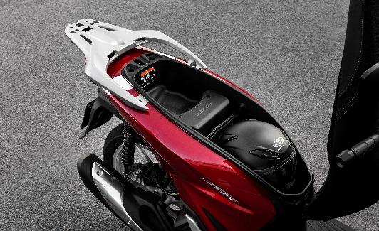 El chasis se ha modificado buscando mayor comodidad y espacio bajo el asiento (un 55% mas capaz), pasando el depósito de gasolina a la parte baja de la plataforma. Ahora dispondremos de espacio para un casco integral y alguna cosa más y una nueva toma USB para el móvil. Las formas de la carrocería son más «afiladas», con el faro delantero en la parte baja del escudo. También es nueva la instrumentación digital de doble pantalla LCD con ordenador de a bordo y nuevas piñas de conmutadores. Se mantiene la Smart Key de arranque sin llave, con la novedad de poderlo ampliar (190 euros) a la apertura remota del baúl trasero opcional. El asiento no cambia de altura y se reduce el peso hasta los 133,9 kg.