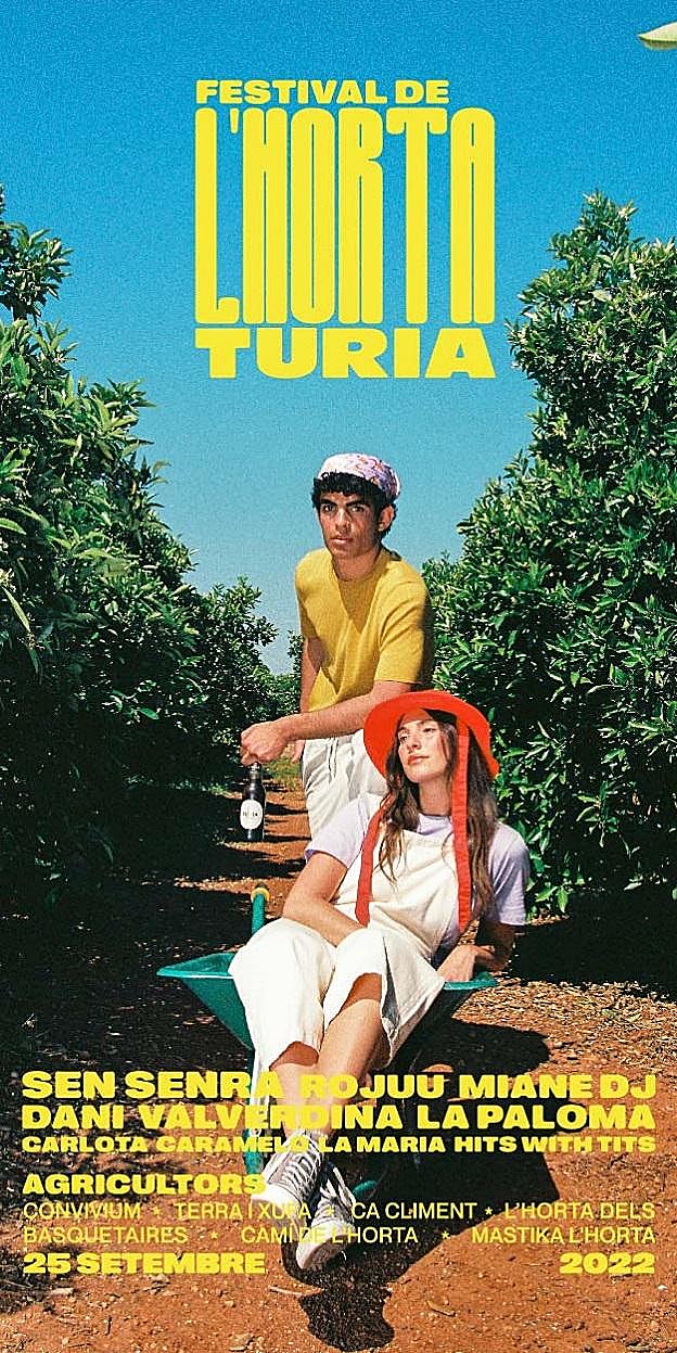Este encuentro con agricultores y artistas, con el que se quiere rendir homenaje a la cultura de la huerta valenciana y a la figura del agricultor, ofrecerá una oportunidad única a sus 3.500 asistentes para disfrutar de los conciertos de grandes nombres del panorama musical nacional como Sen Senra, Rojuu o Miane DJ. Completan el cartel las propuestas musicales de Dani y Valverdina - el proyecto en solitario de María Talaverano, vocalista de Cariño –, así como grupos y artistas de origen valenciano como La Paloma, Carlota, Caramelo, La Maria y Hits With Tits.