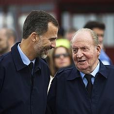 Don Felipe VI y Don Juan Carlos I, en Torrejón de Ardoz.