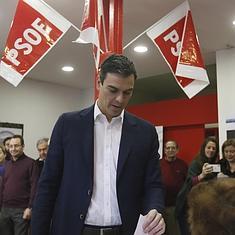 Pedro Sánchez deposita su voto en la consulta de este sábado.