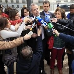 Jaime Montero (c), abogado de los titiriteros imputados, llega a la Audiencia Nacional.