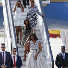Procedente de Liberia y Marruecos, la Primera Dama viaja acompañada de su madre e hijas en esta gira en defensa de la educación de las niñas en países en desarrollo