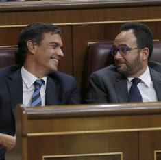 Pedro Sánchez y Antonio Hernando, durante la sesión de investidura.