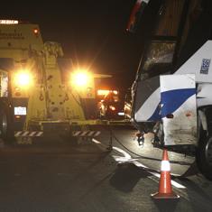 La grúa retira un autobús accidentado el sábado en Soria.