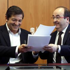 Javier Fernández y Miquel Iceta firman el pacto que pone fin a la discordia socialista