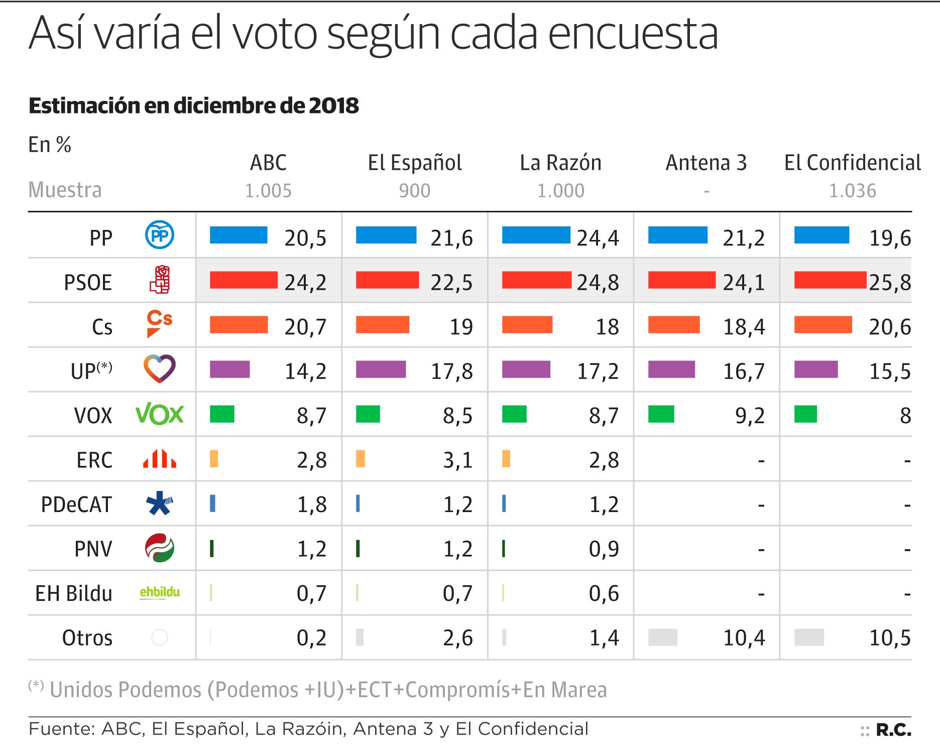 Todos los sondeos se realizaron en la primera quincena de este mes con muestras del orden del millar de personas.
