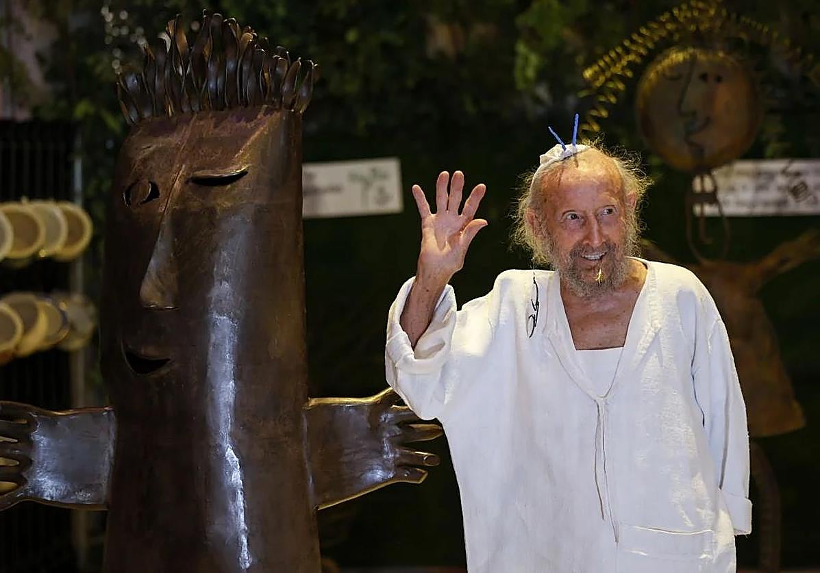 A Juan García Ripollés se le mueve de vez en cuando el casquete con cuernitos de la cabeza, pero él lo vuelve a colocar con ... un gesto mecánico mientras sus recuerdos retroceden camino de su infancia. La ramita de romero continúa, inalterable, en la comisura de los labios. Como siempre, viste con ropa que él mismo se confecciona, ahora que ha salido de su santuario, donde prefiere, directamente, ir desnudo. O, como mucho, por aquello de las normas sociales, con un taparrabos. Ripo, como le llama todo su entorno, tiene 93 años, pero cuenta con la misma lucidez de siempre. Quizás algo más empequeñecido -«necesito comer muy poco»- y un punto más nostálgico, aunque no ha detenido su actividad profesional, en el jardín de Mas de Flors, la pedanía de Castellón donde crea las obras llenas de color que decoran rotondas y galerías y que le han hecho único.