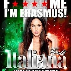 Cada mente leerá algo distinto; sobre todo las malpensadas. 'F****ME. I'm erasmus'. Que podría ser 'Follow me' (Sígueme), en inglés. Aunque le faltaría un asterisco.
