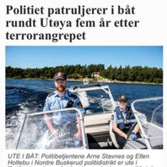 El policía Arne Stavnes apareció en las páginas del periódico Verdens Gang (VG) patrullando en las aguas de Utoya, la isla donde el extremista de derecha Anders Behring Breivik masacró a 69 personas en 2011, una matanza de la que Noruega conmemoraba el quinto aniversario el viernes.
