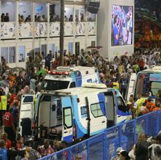Ambulancias, cuerpos de seguridad y bomberos empezaron a llegar a la "pasarela de la samba" en unos minutos de confusión en que la organización del evento decidió retrasar el siguiente desfile. Sin embargo, después de lamentar el accidente por megafonía, el presentador del evento gritó: "¡La vida tiene que continuar!". Y los más de 3.000 miembros de la 'escola' Grande Río iniciaron su desfile de homenaje a la diva bahiana Ivete Sangalo.