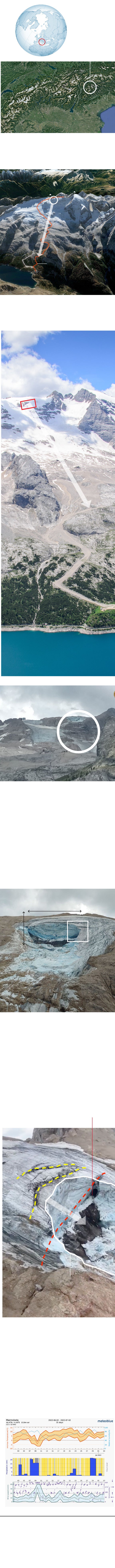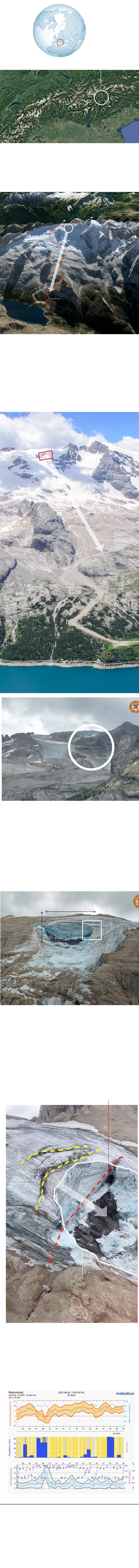 Las imágenes aéreas de la zona parecen corroborar esta hipótesis ya que la ruptura del hielo parte de una grieta en la que una oquedad que ha quedado ahora a la vista «marcaría un flujo de aguas internas que no han drenado bien». No es la primera vez que ocurre y «en un contexto de cambio climático» este tipo de episodios «será más recurrentes», no solo en los Alpes, donde «habría al menos una docena en la misma situación que el siniestrado», sino también en Pirineos. Allí, precisamente la Guardia Civil de Montaña alertaba el día 30 de junio de la peligrosidad del glaciar Aneto que, como el de Marmolada, se ha quedado sin nieve mucho antes de lo habitual generando problemas de seguridad para quienes se aventuren a pisarlo.