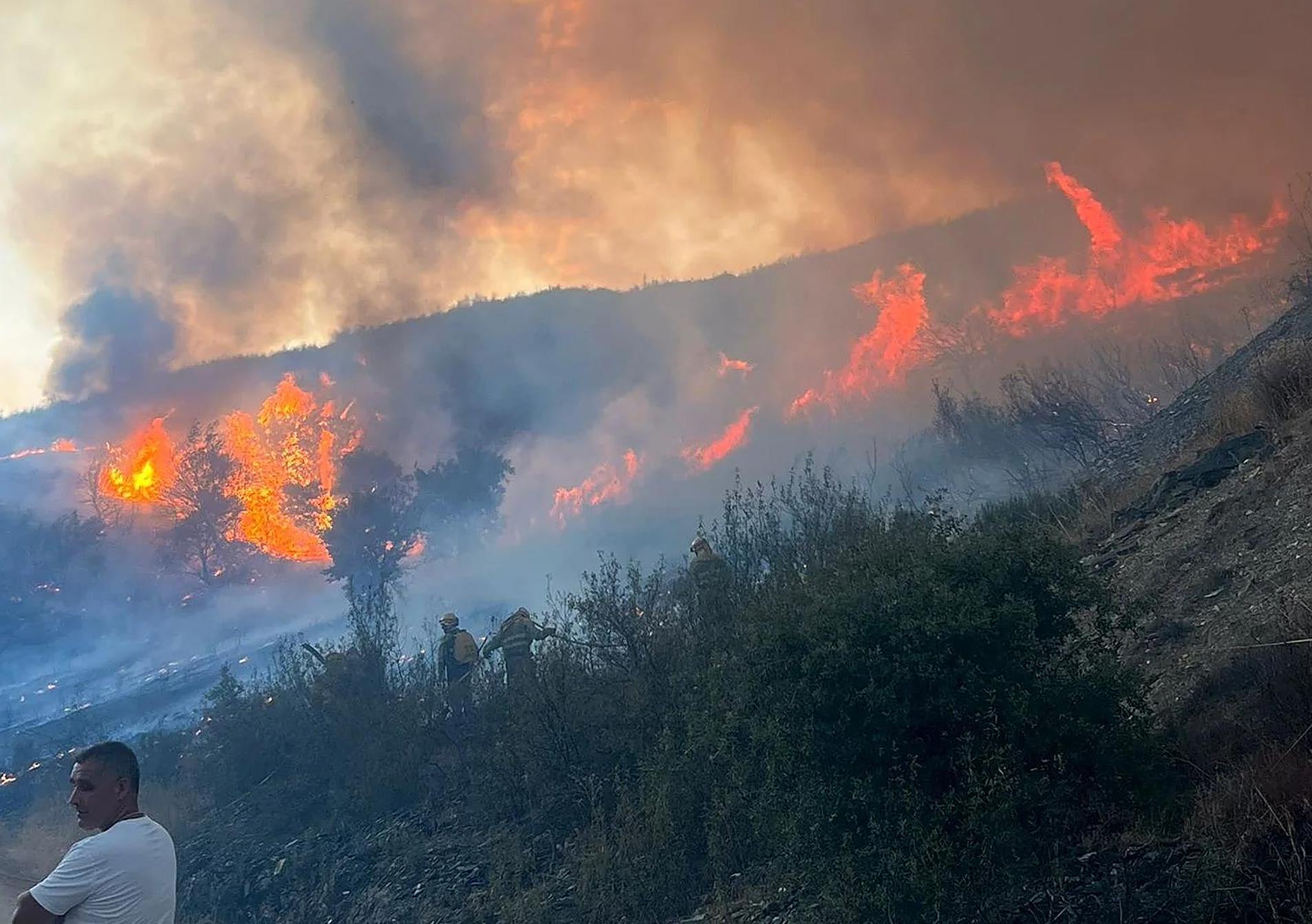 Incluso se decretó el nivel 2 durante la madrugada pasada por su proximidad al núcleo de A Teixeira, si bien la alerta se desactivo porque ya no había riesgo para la población. Sin embargo, seguía avanzando sin control el de Chandrexa de Queixa, que ya ha afectado a 800 hectáreas y es el más grande de los que ha sufrido Galicia este verano. El mayor temor es que alcance el Parque Natural de la Serra do Invernadoiro, una zona montañosa en la parte sur del Macizo Central orensano.