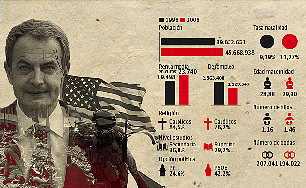 Los conocidos como generación Z -los jóvenes nacidos a partir de mediados de los 90- crecieron en plena recesión, en un mundo azotado por el terrorismo y con índices de paro galopantes. Se ven perfectamente integrados en plena era digital y aprenden rápidamente a manejarse en euros tras dejar la peseta en 2002. El 11-M marcó un antes y un después en esta generación. Entre las 7:36 y las 7:40 del 11 de marzo de 2004, en hora punta, estallaron diez bombas en cuatro trenes que circulaban entre Alcalá de Henares y la estación madrileña de Atocha. 193 personas murieron y más de 1.700 resultados heridas en el peor atentado de su historia. Esta matanza se produjo tres días antes de las elecciones generales del 14-M. Muchos especulan que el vuelco electoral se produjo como consecuencia de lo ocurrido en aquella fatídica fecha. Sin embargo, otros factores ayudan a entender la derrota en los comicios de 2004 por parte del Partido Popular y la victoria del socialista José Luis Rodríguez Zapatero. El 13 de noviembre de 2002 se produce una de las catástrofes medioambientales más importantes de la historia de España. Un petrolero con 77.000 toneladas de fuel, propiedad de una empresa rusa y conocido como 'Prestige', se hunde frente a las costas de Galicia y provoca una marea negra que inunda numerosas playas y obliga a prohibir la pesca durante meses en casi 1.000 kilómetros del litoral. El incidente provocó unas pérdidas de más de 4.000 millones de euros. Tampoco ayudó a 'limpiar' la imagen del gobierno de José María Aznar la inclusión de España en la guerra de Irak en marzo de 2003. El entonces presidente justificó su decisión en que «convenía estratégicamente a España» y se convirtió en el escudero del presidente estadounidense, George W. Bush, y el primer ministro británico, Tony Blair. A los pocos días de que diera comienzo 1998 los españoles despiden a Ramón Sanpedro, el primer ciudadano en pedir la eutanasia -el suicidio asistido- que los tribunales denegaron una y otra vez. A los 55 años, y tras llevar más de treinta postrado en una cama desde que se quedó tetrapléjico, logra con ayuda quitarse la vida con cianuro. En el apartado cultural, Pedro Almodovar obtiene en 1999 el Oscar a la mejor película de habla no inglesa por 'Todo sobre mi madre'. Tres años más tarde repite y logra la estatuilla al mejor guión original por 'Hable con ella'. Por Iban Garbayo