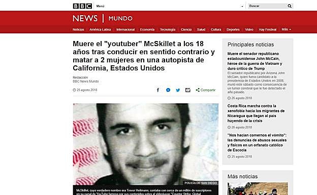 La Policía fue la encargada este sábado de confirmar que McSkillet (cuyo nombre real era Trevor Heitmann) fue el que provocó el siniestro, tras circular a más de 160 kilómetros por hora en dirección contraria por la autopista interestatal 805 de San Diego hacia Los Ángeles, según cuentan testigos a la BBC.