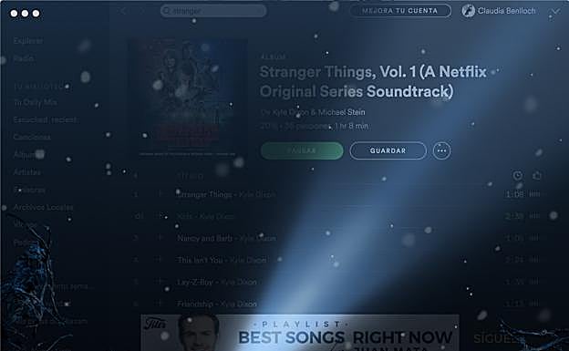 Para viajar al 'Mundo al revés' solo deberás abrir Spotify (si lo haces desde la app de escritorio necesitarás la última versión) y buscar la banda sonora de la serie. Introduce en la barra de búsqueda 'Stranger Things' y la encontrarás fácilmente. Haz click sobre el título de la banda sonora para entrar en la página, y pulsa sobre 'reproducir'. Espera unos segundos, dejando el cursor del ratón inmóvil, y verás como te desplazas al extraño y misterioso mundo alternativo de la serie. El 'easter egg' funciona en la versión web y las versiones de escritorio de la plataforma de música en streaming.