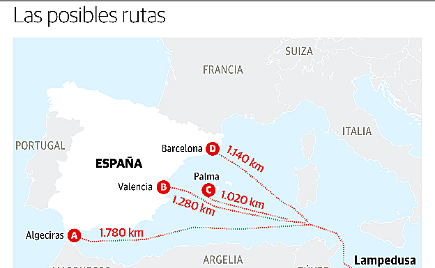 Según desgranó después el responsable de la ONG en Italia, Riccardo Gatti, una solución podría ser que España envíe un barco a Lampedusa para hacerse cargo de los 107 rescatados o bien escoltarlos. Es una solución que ya se utilizó en parte hace un año con el Aquarius, que fue acompañado a Valencia por dos buques italianos en los que viajaron algunos de los rescatados. Gatti puso también sobre la mesa el desembarco en Italia para un traslado posterior en avión.