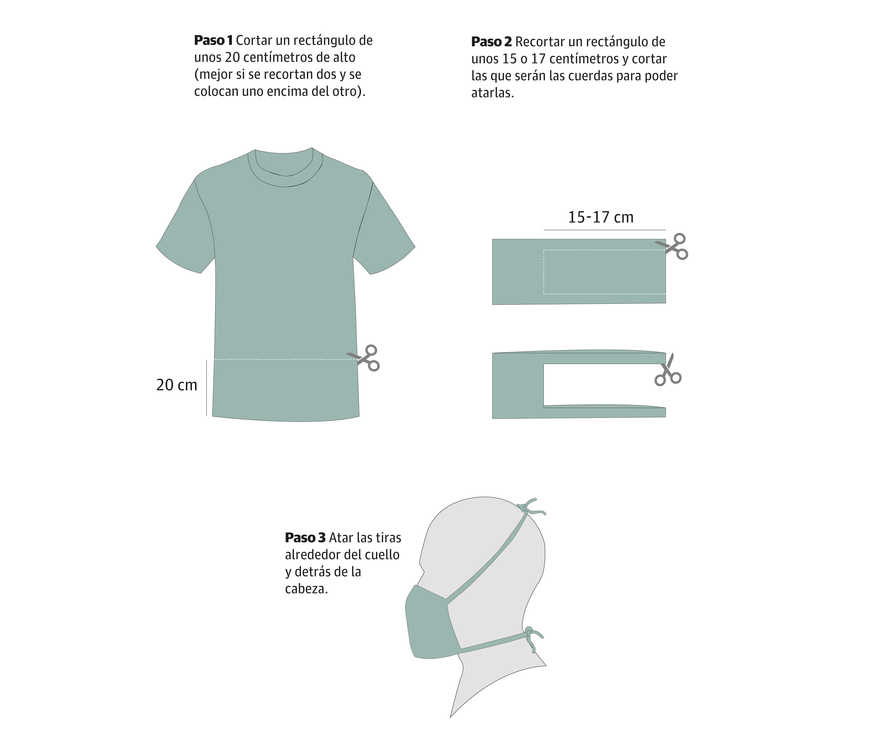 El CDC propone realizar una mascarilla más simple utilizando solo una camiseta de algodón 100% y unas tijeras.