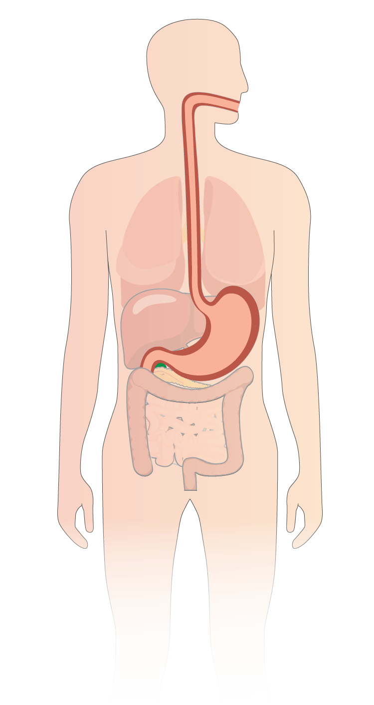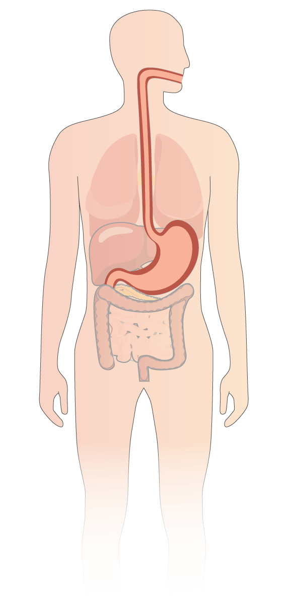 Cuando comemos, la cómida pasa al esófago y al estómago. Los jugos gástricos la transforman en una mezcla semilíquida de alimentos parcialmente digeridos y jugos gástricos