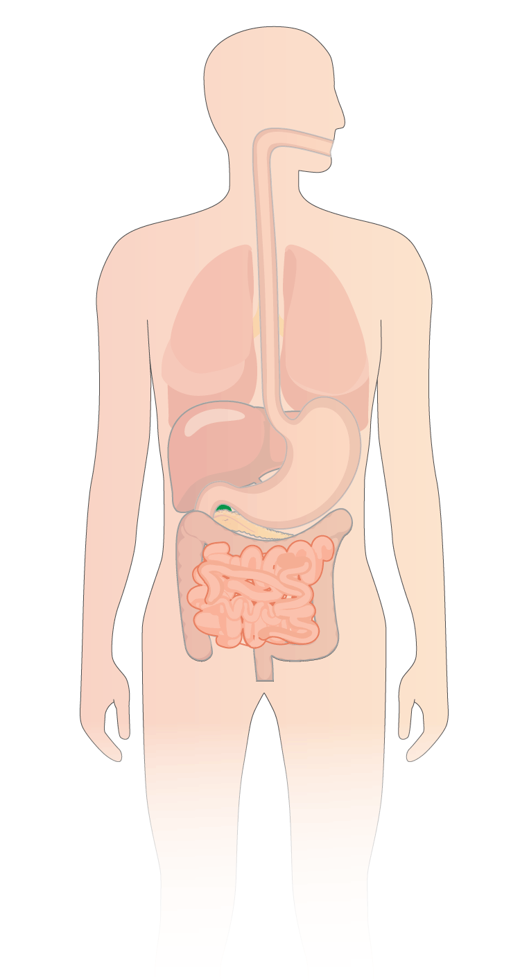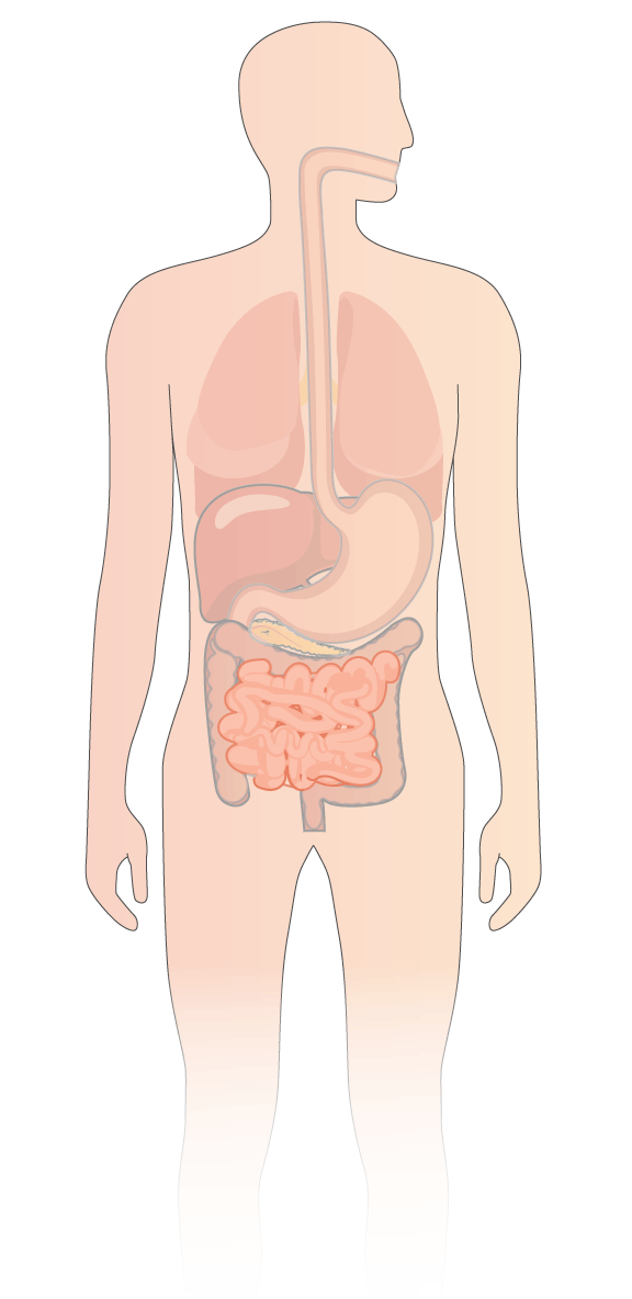El estómago vierte la comida parcialmente digerida en el intestino delgado y por el efecto de los jugos gástricos, la bilis, el jugo pancreático y los propios jugos intestinales se transforman las moléculas más complejas de la comida en unas más sencillas de fácil absorción