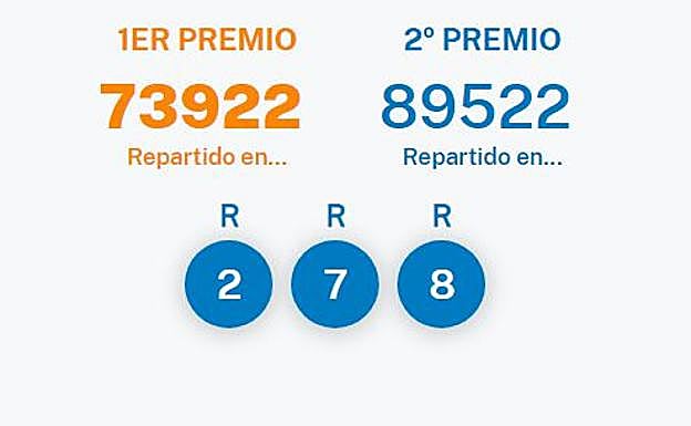 Así, el primer premio ha correspondido al número 73922 y el segundo al 89522.
