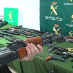 1.- Armas de fuego Tres fusiles de asalto AK-47, cinco subfusiles, diez escopetas, siete pistolas, diez revólveres, seis rifles y carabinas, un lanzagranadas de 40 mm. de fabricación artesanal, catorce pistolas detonadoras (seis de ellas ya transformadas para efectuar fuego real), cuatro armas de avancarga, dos ballestas, 38 cañones semielaborados, con los que rehabilitar armas inutilizadas, un silenciador y una pistola eléctrica.