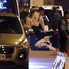 Agentes de la Guardia Civil y de los servicios funerarios junto a los cuerpos de dos de las cuatro personas fallecidas.