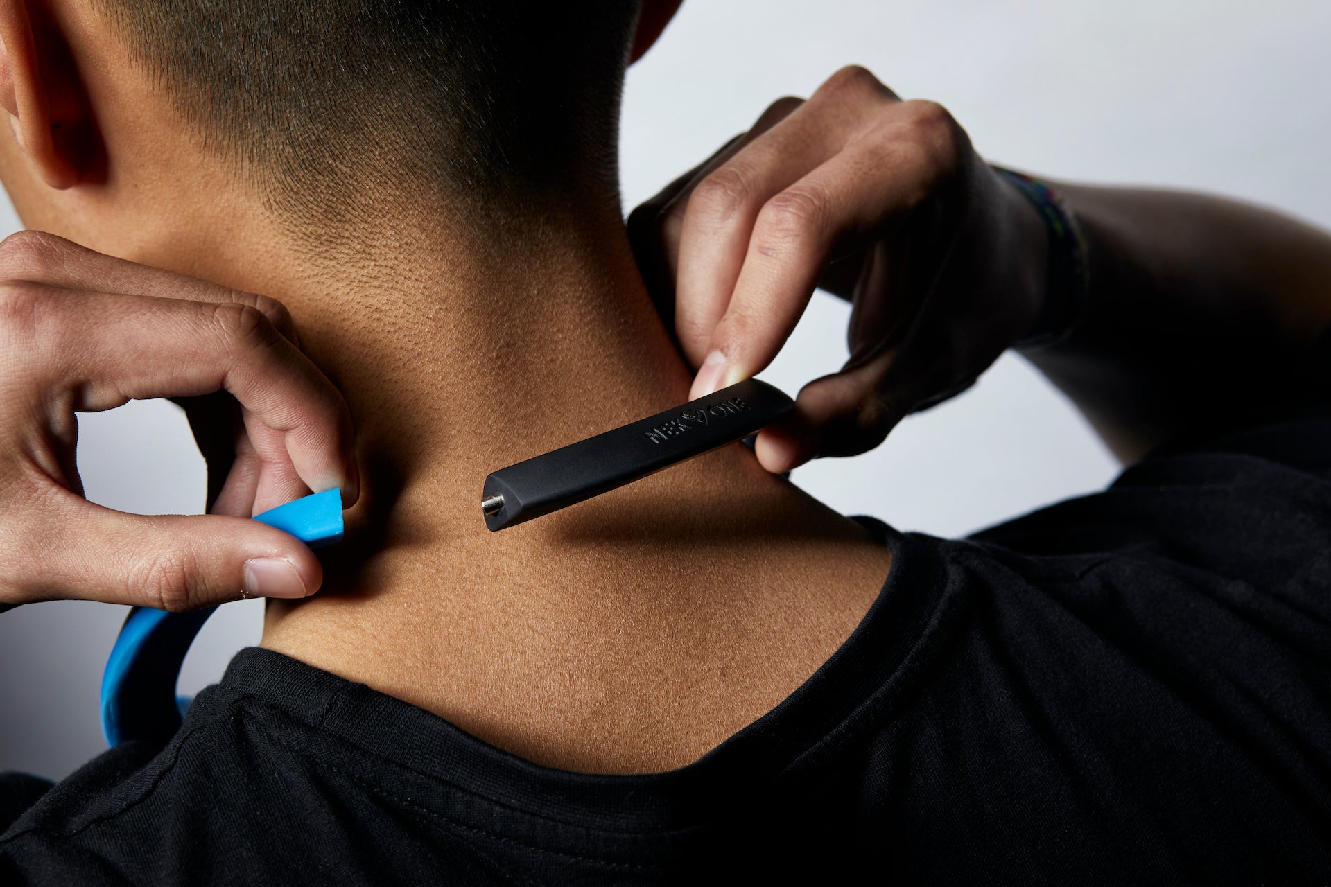Hecho con silicona hipoalérgica y equipado con micro altavoces estéreo direccionables al oído, el NeckOne ha sido concebido como un alternativa a los auriculares tradicionales porque no aísla por completo pero tampoco es molesto ni invasivo con las personas que se encuentran en el entorno.