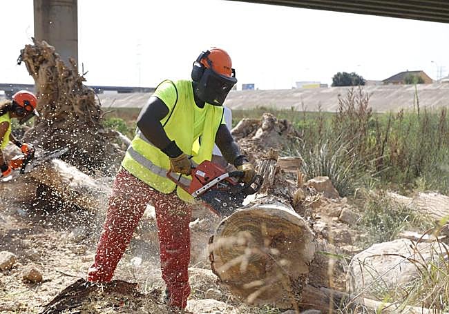 Mundina ha indicado que van a seguir exigiendo a la CHJ que "limpien con rapidez". Esta semana, si bien el CHJ ha movido con maquinarias los troncos pesados que se habían quedado atascados en los ojos de los puentes del término de Valencia, para dejarlos en espacios más abiertos, desde este martes los operarios contratados por el Ayuntamiento ya han procedido a serrar los enormes troncos para trocearlos.