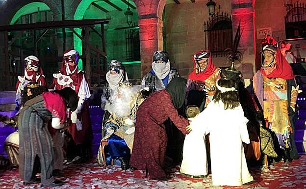 A su llegada a la plaza de España, Melchor, Gaspar y Baltasar se dirigieron al pesebre para adorar al Niño Jesús y le hicieron entrega de oro incienso y mirra, mientras un coro interpretaba el 'Mesías' de Haendel.