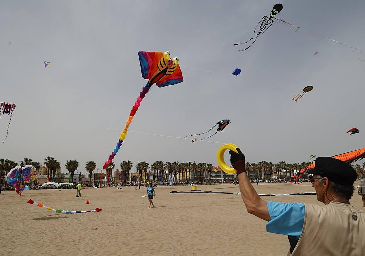 Lo avisaba Pascual Pérez, el presidente del Milotxes Club de Valencia, organizador de evento junto al Ayuntamiento de Valencia: había que esperar un poco para ver a esos proyectiles acrobáticos realizando piruetas en el aire. Y así ha sido porque pasadas la 13 horas de la tarde ha sido el momento en el que se han levantado las cometas.