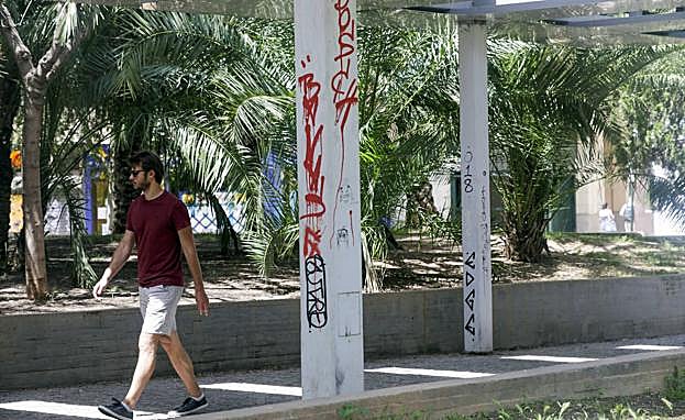 Todo ello en un jardín que cuenta con la máxima protección patrimonial al estar en un entorno de un Bien de Interés Cultural. La profusión de pintadas es el mejor ejemplo de la degradación del parque diseñado por el arquitecto sevillano Guillermo Vázquez Consuegra, autor asimismo del cercano MUVIM.