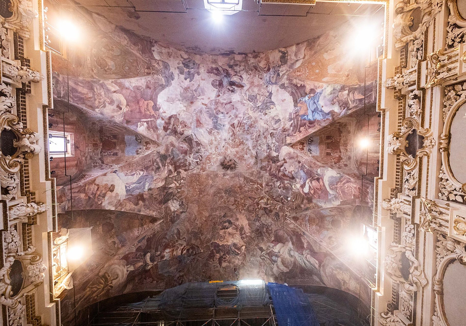 Quedará al descubierto el brillante resultado de cuatro años de esfuerzo -desde 2021- y seis millones de euros de inversión para devolver la riqueza que el fuego, el paso del tiempo y los desaciertos en restauraciones anteriores, arrebataron a una obra de arte de gran magnitud y de inmenso valor artístico. Ni más ni menos que 1.200 metros cuadrados de frescos de Palomino.