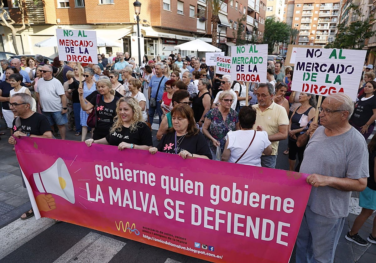 Reclaman el fin del mercado de la droga, una biblioteca, un local social, el plan integral para la dignificación de la zona y el acondicionamiento de dos plazas que esperan desde hace varios años'La Malva está farta'. Sí, los vecinos del barrio de la Malvarrosa están cansados, hartos, de que no se les escuche, de que sus reivindicaciones no obtengan respuesta. Y no es cosa de un día, ni de meses. Están cansados «gobierne quien gobierne». Es un asunto de años. Hoy han vuelto a manifestarse, han salido a la calle para alzar una voz ya indignada por tan larga espera. Se ha concentrado en ese punto que ya es tradicional para las protestas: las cuatro esquinas. El plan integral para las Casitas Rosas, punto del barrio donde los vecinos están hartos de soportar la venta de droga y los conflictos sociales.