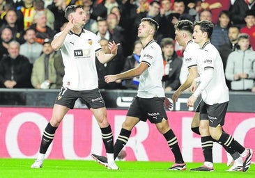 Guerra es una de las grandes referencias de este equipo en el que destaca con luz propia Pepelu. Los cinco millones de inversión por el exlevantinista nada tienen que ver con otro que costó lo mismo (Cenk). Pepelu está llamando cada vez con más fuerza la puerta de una selección que es verdad que tiene una amplia nómina de centrocampistas. No sólo es el que más minutos ha disputado (exceptuando Mamardashvili). El exgranota no sólo ha demostrado un motor casi inagotable (contra el Villarreal se plantó en 11,2 kms de recorrido con velocidades más que interesantes) sino que está destacado en varios rankings blanquinegros: el segundo que más tiros a puerta hace, el segundo también que más faltas comete (Baraja valora el equilibrio que aporta) y el que más pases acertados realiza con 43 de media por partido. Pepelu sobresale en un equipo definitivamente asentado por las dimensiones que adquiere Mamardashvili en su portería (el noveno que más paradas hace en Primera); el alto nivel que mantiene el capitán José Luis Gayà (sobresaliente frente al Villarreal); la seguridad que ya ha adquirido Mosquera pese a su juventud y el empeño que siempre pone Hugo Duro, ya sea tenga que jugar al lado de Yaremchuk o en solitario. Lo de Yaremchuk también merece un capítulo aparte. Lo hizo Guillamón y también el ucraniano, que se permitió el lujo de echarme mano a la oreja cuando marcó al Villarreal, en una reivindicación un tanto absurda. Llevar un gol en 19 jornadas de Liga para un delantero en un equipo casi bajo mínimos no es ninguna cifra de la que poder presumir. En otras situaciones Mestalla fue implacable.