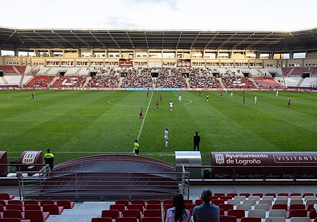 «Salta la sorpresa en Las Gaunas» es una expresión que cobra sentido por la historia que transmite el nombre del mítico estadio de Logroño. En 1998 comenzaron las obras de construcción del nuevo estadio Las Gaunas, pero los problemas económicos hicieron que no se terminara la obra hasta 2002, lo que alargó la vida del viejo más de lo esperado, hasta que fue derruido aquel mismo verano.El actual estadio se levantó a pocos metros de donde se encontraba el vetusto, al otro lado del asfalto, ya que se aprovechó para ampliar una avenida principal de la ciudad. Los terrenos también dieron paso a un parque y a edificios de viviendas, sin rastro de lo que en su día fue un templo del fútbol de barro español.
