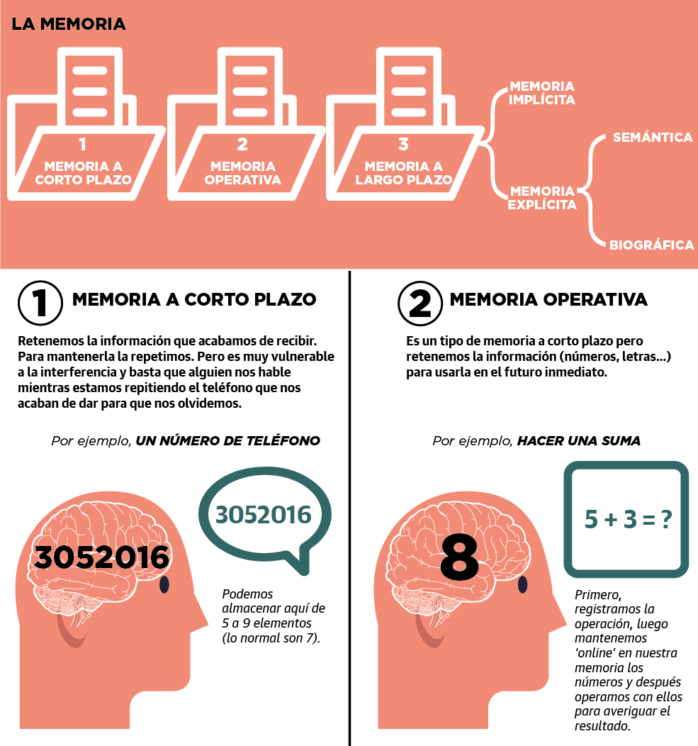 «Probablemente se acuerde del número del fijo que había en casa. Pero, ¿cuántos móviles puede recordar hoy? No es solo que nos hayamos hecho cómodos, es que la cantidad de elementos que podemos retener en la memoria de corto plazo son siete (con una variación de dos arriba o abajo). Por eso, antes te recitaban el teléfono fijo de alguien, número por número, y no resultaba difícil aprenderlo, porque eran siete números, sin contar el prefijo. Los móviles, sin embargo, tienen nueve y memorizar las nueve cifras es complejo, de ahí que se agrupen en bloques: 648 890 647. Dicho así, para el cerebro ya no son nueve números, sino tres elementos. De igual modo, no seremos capaces de recordar las treinta cosas que tenemos que comprar en el supermercado, pero si agrupamos esos productos en cuatro o cinco categorías: frutas, conservas, pescado y productos de limpieza, por ejemplo, será más sencillo. De todos modos, aunque lo memoricemos probablemente en unos segundos se nos olvidará. Y esto no es malo, todo lo contrario, ya que no sería eficiente que memorizásemos todo lo que nos ocurre. Si hay algo que queremos retener, un número de móvil por ejemplo, para que pase de esa memoria a corto plazo y evanescente a la de largo plazo habrá que recitarlo en voz alta, repetirlo o hacer asociaciones significativas. Por ejemplo, si tras esta entrevista haces la asociación 'Félix, el neurólogo', será más fácil que recuerdes mi nombre en el futuro que si solo dices 'Félix'. Al concederle una categoría, en este caso la profesión, cuando necesites recordar mi nombre rescatarás esa información del 'cajón' de neurólogos que conoces, que probablemente serán muy pocos, en lugar de sacarla del cajón de los nombres, donde habrá muchos», explica el ejemplo Félix Viñuela.