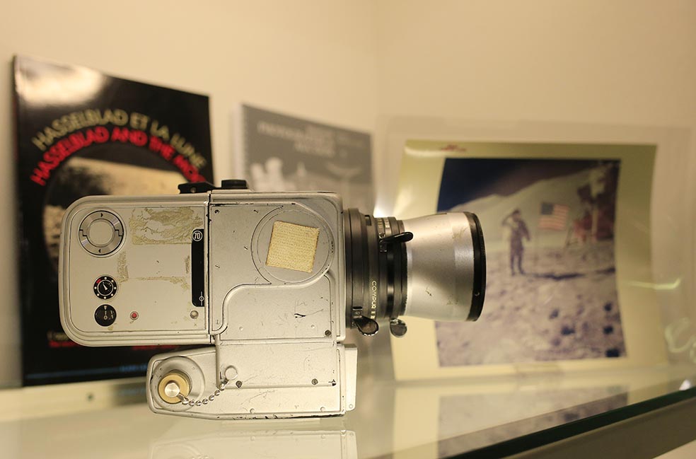 Las cámaras fotográficas Hasselblad fueron las responsables de documentar aquel momento histórico en el que los astronautas Aldrin y Armstrong pisaron por primera vez el suelo gris de la superficie lunar. Aquella elección fue el resultado de muchos años de cooperación entre el fabricante sueco y la NASA, y se diseñaron con una tecnología capaz de aguantar las temperaturas extremas, las vibraciones y la falta de gravedad. Sin embargo, las cámaras que participaron en aquel alunizaje y las que fueron a las siguientes misiones espaciales se quedaron allí, en la Luna. Una vez extraídas cuidadosamente las películas, los astronautas tenían la orden de deshacerse de ellas y reemplazarlas por muestras de rocas lunares. Tenían que cumplir con los requisitos de peso ligero que requería un retorno seguro. Las siguientes cinco misiones Apolo que llegarían a la Luna acabaron abandonando allí 12 cámaras Hasselblad y sus respectivos objetivos. La única cámara que tuvo la suerte de volver, la Hasselblad 500 que utilizó Jim Irwin durante la misión Apolo 15 en 1971, se subastó en 2004  y fue adquirida por el coleccionista japonés Terukazu Fujisawa por 750.000 euros.